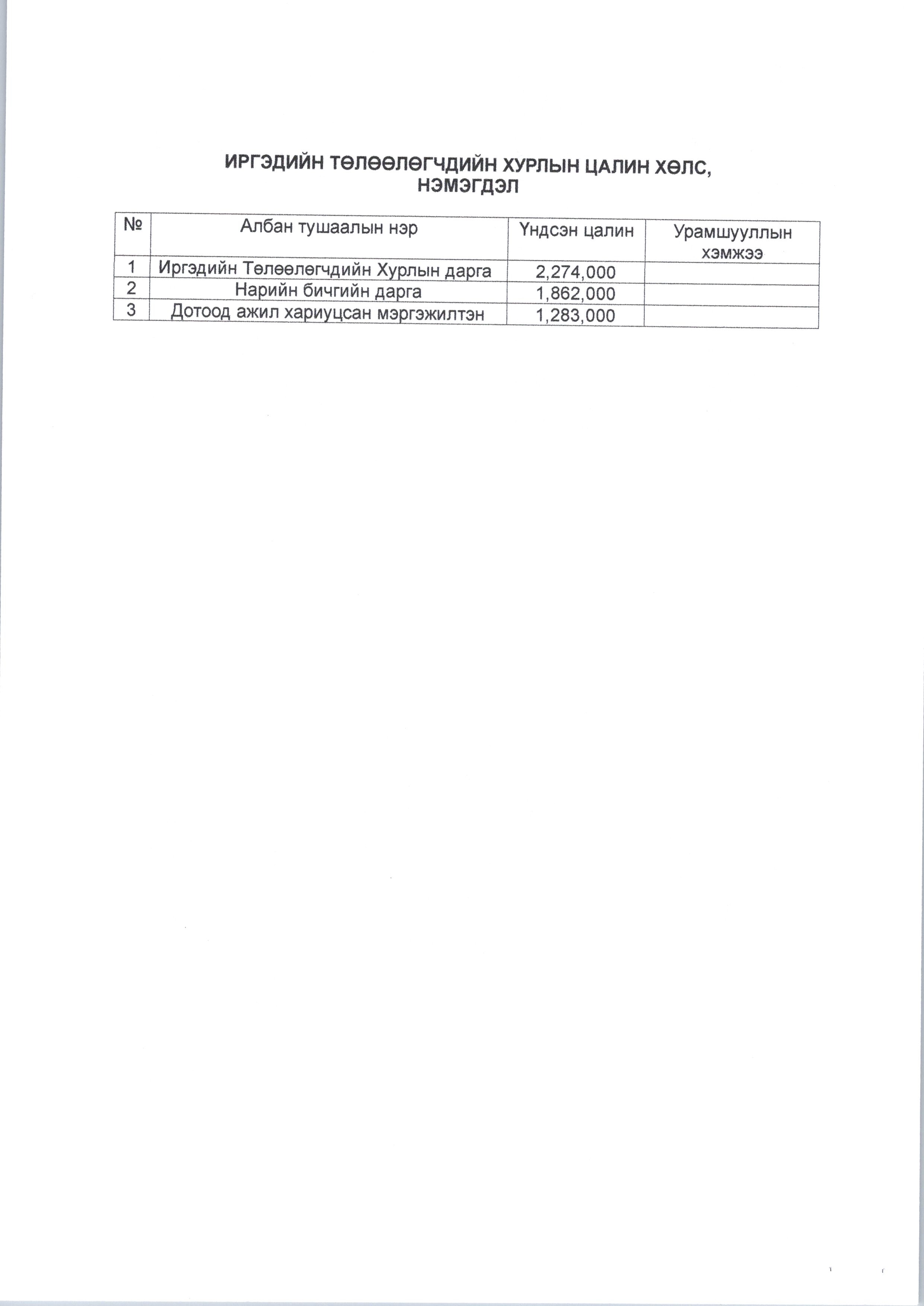 Байгууллагын албан хаагчдын цалин хөлс, урамшууллын хэмжээ
